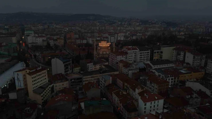 Eskişehir'de Ramazan Ayı'nın geleneği olan mahyada 'Oruç günahlara kalkandır' ifadesi Reşadiye Cami'nin iki minaresi arasına asıldı.