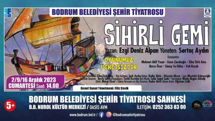 Bodrum Belediyesi Şehir Tiyatrosu tarafından çocuk oyunu “Sihirli Gemi” cumartesi günleri Nurol Kültür Merkezi’nde sahnelenecek.