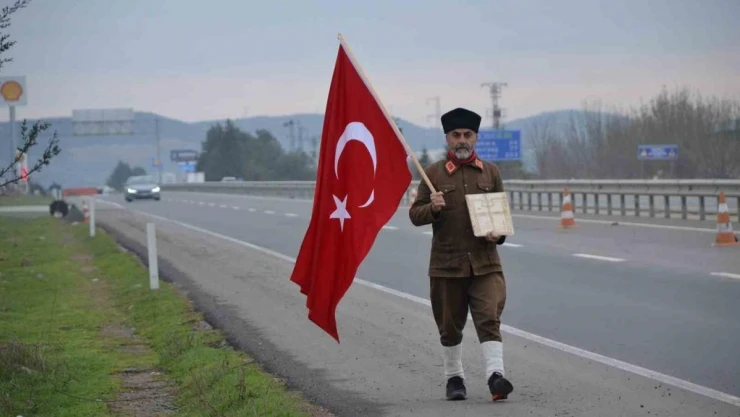 Türk bayrağı ve şehitler için İstanbul'dan Çanakkale'ye yürüyen Tokat Onbeşli Torunları Derneği Başkanı Saffet Gümüş, Keşan'a ulaştı.
