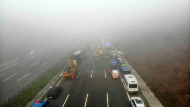 Kaza, saat 04.45 sıralarında Kuzey Marmara Otoyolu Sakarya kesimi Taşkısığı mevkiinde meydana geldi. Yoğun sisin etkili olduğu bölgede aralarında 3 otobüs ve bir tırın da bulunduğu 7 araç zincirleme kazaya karıştı. 112 Acil Çağrı Merkezine yapılan ihbar üzerine bölgeye çok sayıda sağlık, itfaiye, jandarma ve Karayolları ekipleri sevk edildi. Kaza sebebiyle otoyolun İstanbul yönünde ulaşım durdu. Bölgeye ulaşan ekipler araçlarda sıkışan ve yaralanan vatandaşlar için seferber oldu. Araçlarda sıkışan yaralılar, ekipler tarafından çıkarıldı. Olay yerinde ilk müdahalesi yapılan yaralılar, hastaneye kaldırıldı. Kazada 10 vatandaş hayatını kaybetti, 59 kişi ise yaralandı. Yaralılardan 1’inin hayati tehlikesinin bulunduğu öğrenildi.