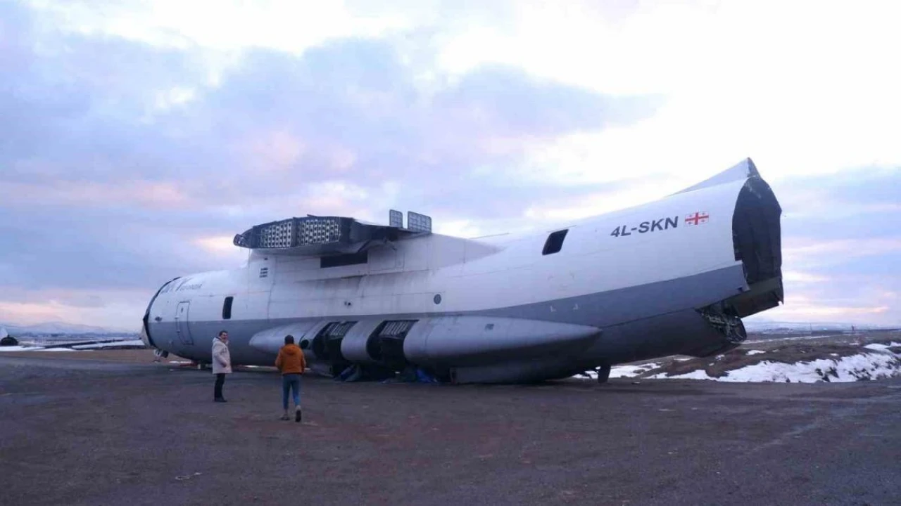 2011 yılında Van’da meydana gelen depremde Gürcistan’dan yardım malzemesi getiren ve apronda geçirdiği kaza nedeniyle kokpiti hasar gören, bu yüzden yıllardır Erzurum’da beklemek zorunda kalan uçak, parçalara ayrılarak havalimanı dışındaki boş bir arsaya çekildi. Kaza nedeniyle kokpit bölümünde oluşan hasarın onarılması ve Gürcistan’a gönderilmesi için gerekli işlemlerin yapılması amacıyla havalimanındaki parka çekilen uçak tam 12 yıldır Erzurum Havaalanından akıbetini bekliyordu ancak bu olmadı. Devlet Hava Meydanları İşletmesi Genel Müdürlüğünce Erzurum Havaalanı’nda bulunan ve hurdaya ayrılan uçak, ihaleyle satıldı.