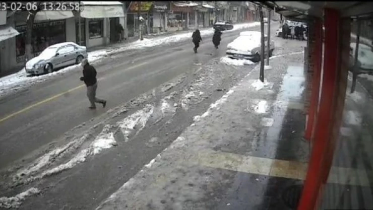 Görüntülerde depremle birlikte yoldaki insanların sağa sola kaçışma anlarının ardından biranda ortalığı toz bulutun kapladığı apartmanın ise saniyeler içerisinde yerle bir olduğu görülüyor.