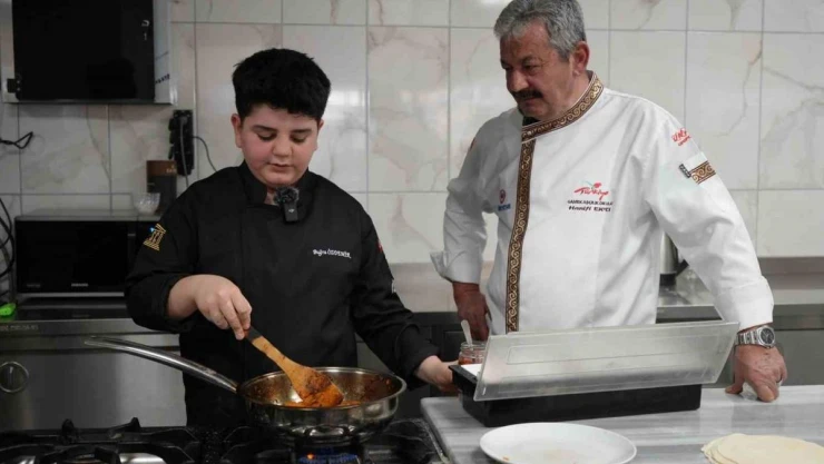 Gaziantep Büyükşehir Belediyesi’ne bağlı Aziz Sancar Eğitim ve Sanat Merkezi’nde aşçı yardımcısı olarak eğitim alan Buğra Özdemir, 13 yaşında olmasına rağmen kendisinden yaşça büyük insanlardan bile daha iyi yemek yapma becerisi gösteriyor. 13 yaşındaki Buğra, dedesinin de aşçı olması nedeniyle mesleğe olan ilgisinin yanı sıra depremde yardıma muhtaç insanların hayatına dokunmanın da kendisinde duygusal olarak büyük etki gösterdiğini ve bu sebeple aşçı olmak istediğini söyledi.