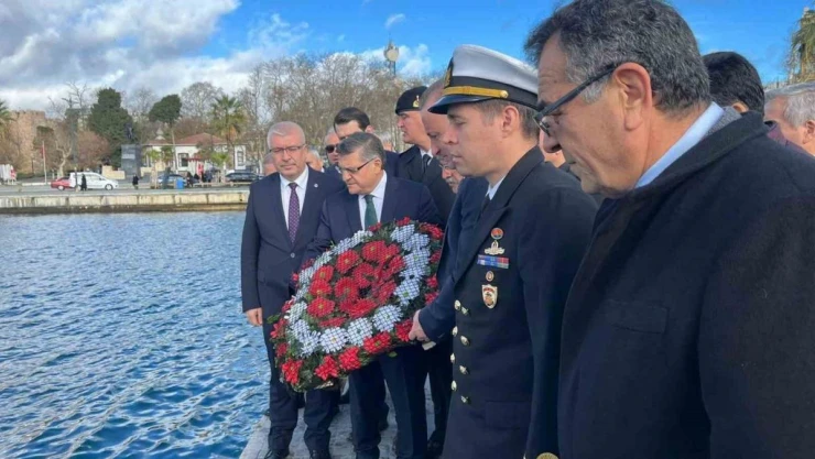 Törenin ardından şehitlerin anısına denize çelenk bırakıldı.
