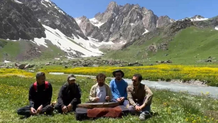 Gezgin öğretmen ve doğa gözlemci Ümit Bartın, Hakkari'deki Cennet ve Cehennem Vadisi'nde yer alan 20 bin yıllık buzullarda santur çalarak çevre kirliliğine dikkat çekti.