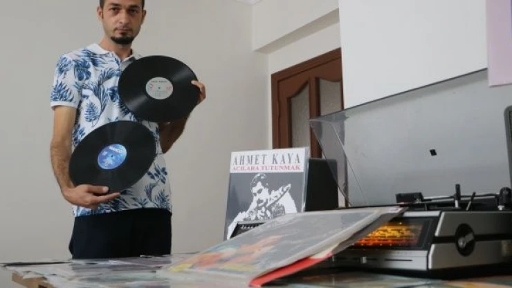Malatya'nın Battalgazi İlçesi'nde yaşayan 35 yaşındaki Mustafa Işık, dinlediği ve hayran kaldığı plak sesiyle 20 yılda 400 plak topladı.