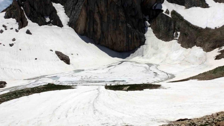 2015 yılında uydu üzerinden keşfedilen Munzur'daki buzul yerinde görüntülendi