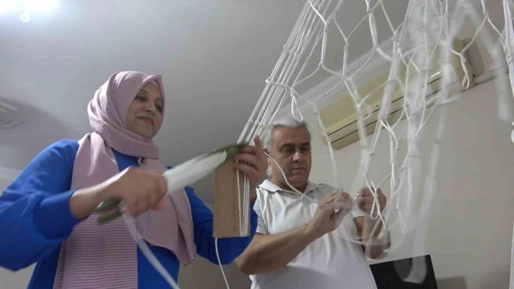 Zehra Tanyol ise evlerini atölyeye çevirdiklerini anlattı. File yapmanın zor olduğunu ve büyük zaman gerektirdiğini kaydeden Tanyol, ilk işe başladıkları basketbol filesinin yapımını kendisini çözdüğünü dile getirerek, “Eşim bir basketbol filesi aldı. İlk önce yapamadı. 24 tane ipi kesiyordu evin etrafında ortasında. Ben hatta ona kızıyordum, ya ne yapıyorsun evi mahvediyorsun, kirletiyorsun dedim. Ondan sonra ben fileyi yaptım ama sevincini görmeniz lazım. Ondan sonra Eminönü’nde firmaya başladı. Biz genellikle basketbol filesiyle başladık bu işe. Ondan beri yapıyoruz” açıklamasında bulundu.