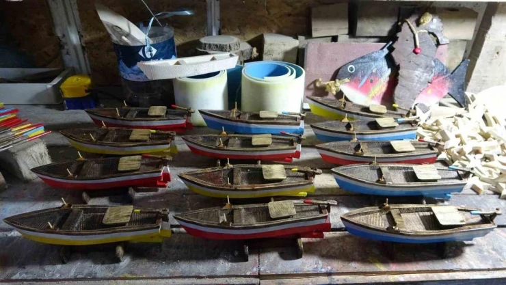 Yaptığı ürünler hakkında bilgiler veren Ayazma, “Ahşap ürünlerden yapılabilecek her şeyle uğraşıyorum. Kotra yapımı, üzüm asmasından kapı süsleri, kütüklerden farklı tasarımlar, küçük çeyiz sandıkları yapıyorum. Denizden çıkan lodos odunlarını değerlendiriyorum. Bunun yanında kendi kalıplarım var, polyester döküm de yapıyorum. Dolap magnetlerini kendim imal ediyorum. Bunun yanında 3-4 tane, 4-5 metre uzunluğunda polyesterden kayık yaptım. Hobi olarak yapılabilecek şeylerin hepsini yapmaya çalışıyorum” diye konuştu.