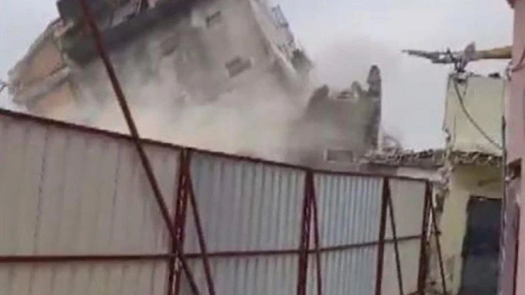 4 katlı bina, iş makinasının darbesiyle kağıt gibi yerle bir oldu