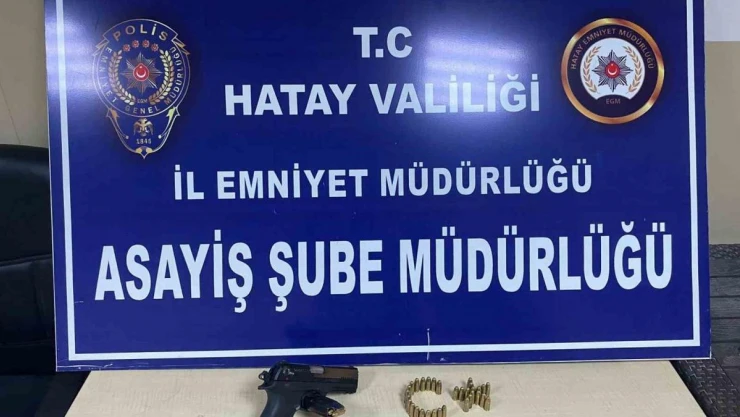 Hatay'da 8 Yıl 5 Ay hapis cezası ile aranan şahsın üzerinden ruhsatsız tabanca ve 46 fişek çıktı.