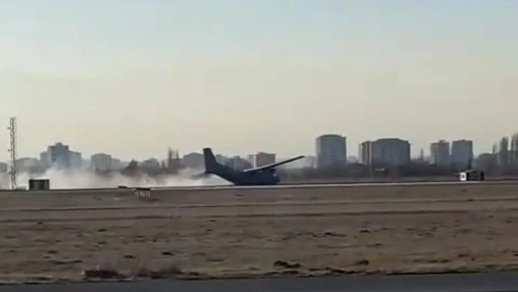 Kayseri 12. Hava Ulaştırma Üs Komutanlığından eğitim için kalkan ve acil iniş yapan C-160 uçağının iniş görüntüleri ortaya çıktı.