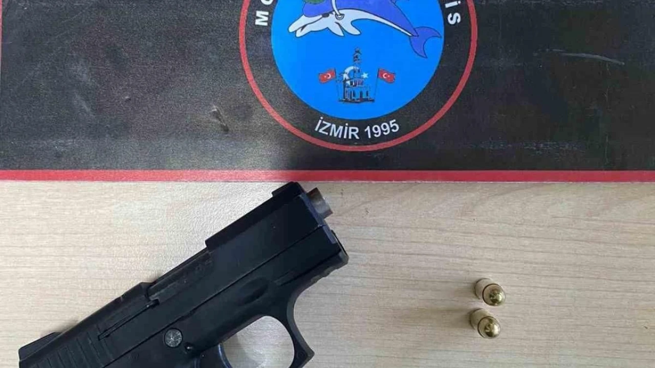 Hırsızlık suçundan 30 yıl 1 ay 8 gün hapis cezası ile aranan zanlı, İzmir’de ’Yunuslar’ olarak bilinen motosikletli polis timleri tarafından ruhsatsız tabanca ile yakalandı. Zanlı, adli mercilere teslim edildi.