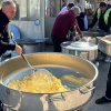 Ardından Aydın, iş yerine gelen müşterilerine ve mahalledeki vatandaşlara kazanlarla yaptığı helvayı dağıttı.