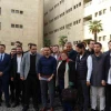 Adliye çıkışında yargılanan gençlere CHP Gençlik Kolları da destek verdi.