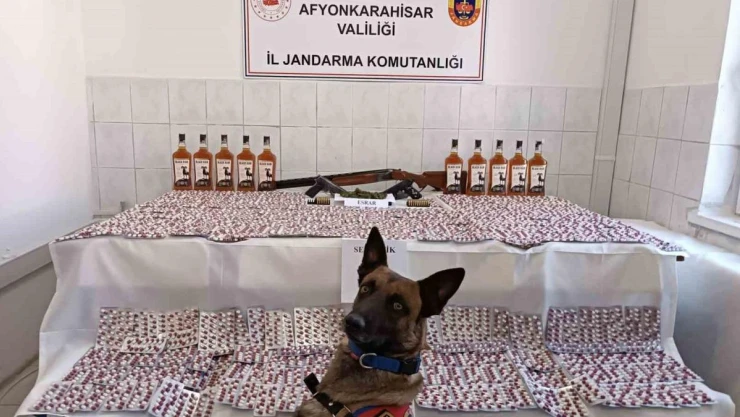 Afyonkarahisar İl Jandarma Komutanlığı ekipleri uyuşturucu imal ticareti ve kaçakçılık olayları ile mücadele kapsamında Afyonkarahisar İl Merkezi ve Çay ilçesinde icra edilen kökünü kurutma operasyonlarında 4 şüpheli şahsa işlem yaptı. Şahısların ev, araç ve üstlerinde yapılan aramalar sonucunda; 6 bin 500 adet sentetik ecza, 27 gram esrar, 1 gram kenevir tohumu, 2 adet ruhsatsız tabanca, 1 adet ruhsatsız av tüfeği, 10 litre kaçak alkol, 80 adet 9 tabanca fişeği ele geçirildi.