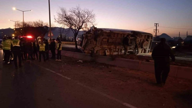 Afyonkarahisar'da işçi servisi refüje devrildi: 12 yaralı