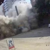 Ağır hasarlı bina tek dokunuşla yerle bir oldu, o anlar güvenlik kamerasında