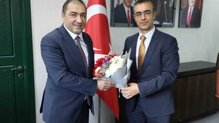 Konuşmaların ardından Fedai Din, Ahmet Çelebi’ye çiçek takdim ederek yeni görevinde başarılar diledi.
