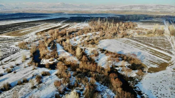 Ağrı'da kış manzarası havadan görüntülendi