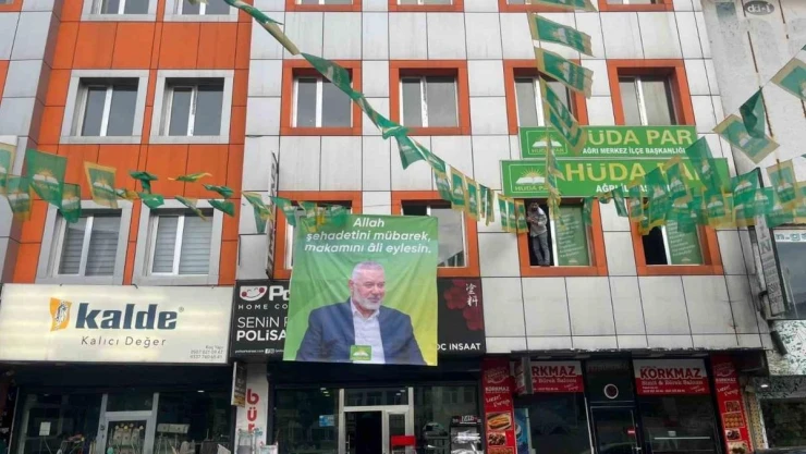 Ağrı il merkezindeki Vali Konağı üzerinde yer alan HÜDA PAR Ağrı İl Başkanlığı, teşkilat binasına 5 metre yüksekliğinde ve 2 metre eninde, üzerinde "Allah şehadetini mübarek, makamını âli etsin." yazılı İsmail Heniyye’nin fotoğrafının olduğu bir pankart astı. HÜDA PAR Ağrı İl Başkanı Şaban Gökhan, Filistin direnişini her platformda desteklediklerini ve bu direnişe katkı sunduklarını belirterek, bu adımın parti olarak Filistin direnişinin yanında olduklarının bir göstergesi olduğunu söyledi.