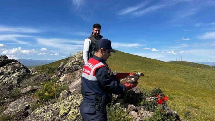 Ağrı’da yaralı halde bulunan ve tedavisi yapılan şahin doğaya salındı.