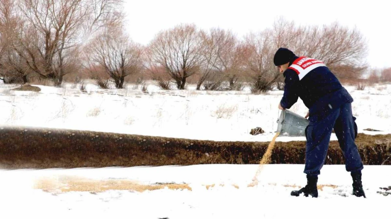 Ağrı'da, jandarma personelleri tarafından dondurucu soğuklarda yiyecek bulamayan yaban hayvanlarına yiyecek bırakıldı.