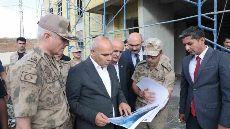 Ağrı Valisi Mustafa Koç, Hamur ilçesinde yapımı devam eden Hükümet Konağı ve İlçe Jandarma Komutanlığı hizmet binalarında incelemelerde bulundu.