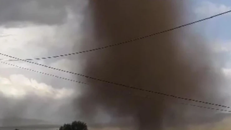 Bitlis'in Ahlat ilçesinde fırtına sonrası metrelerce yükseklikte aniden ortaya çıkan hortum korkulu anlara neden oldu.