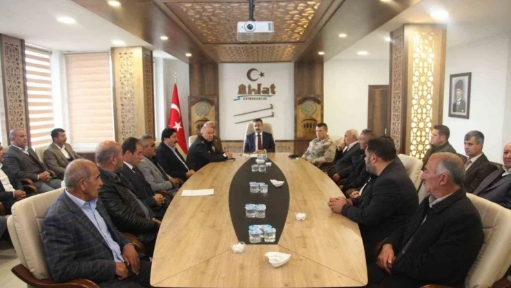Ahlat Kaymakamlığı toplantı salonunda düzenlenen kutlama programına mahalle ve köy muhtarları katıldı. Kutlama programına katılan Ahlat Kaymakamı Batuhan Bingöl, muhtarlarla sohbet ederek, muhtarların 19 Ekim Muhtarlar Günü’nü kutladı. Bir süre muhtarlarla sohbet ederek görüş ve önerilerini dinleyen Kaymakam Bingöl, muhtarlara çalışmalarında başarılar diledi.