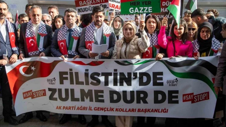 AK Parti Ağrı Gençlik Kolları Başkanlığı, yapmış olduğu basın açıklaması ile İsrail'in Filistin'e yönelik saldırılarını kınadı.