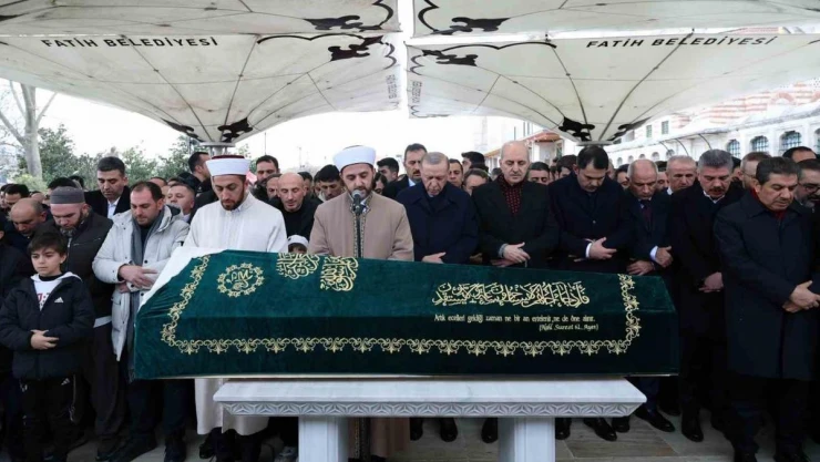 Cenaze namazının kılınmasının ardından tabutu omuzlayan Cumhurbaşkanı Erdoğan, cenazeyi araca kadar taşıdı.