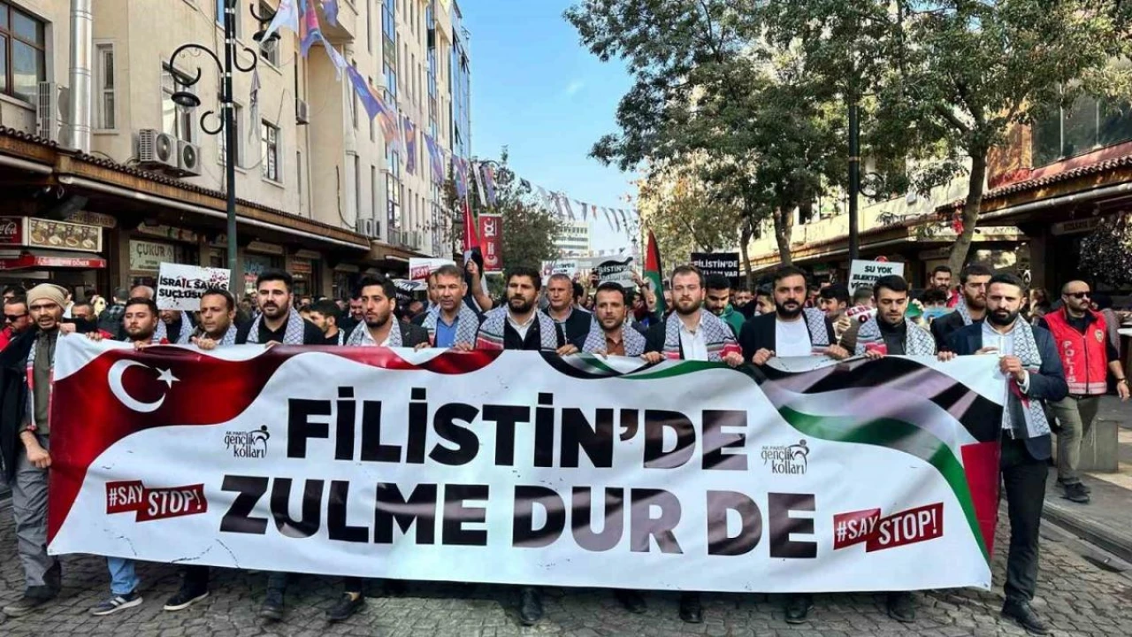 İsrail’in Gazze’de sivilleri hedef almasına tepkiler çığ gibi büyüyor. AK Parti Gençlik Kolları tarafından 81 ilde eş zamanlı düzenlenen ’SayStop’ sloganıyla Filistin’e destek yürüyüşü, Sur ilçesindeki Dağkapı Meydanından başlayıp Ulu Cami önünde sona erdi. 17 ilçe gençlik kolları başkanın da eşlik ettiği yürüyüş sonunda konuşma yapan AK Parti İl Gençlik Kolları Başkanvekili Abdurrahman Kikizade, İsrail’in tarihe bir kez daha adını kara lekeyle yazdığını belirtti.