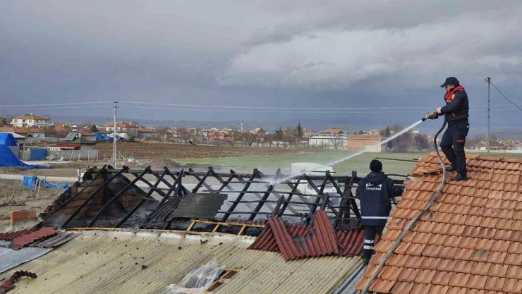 Yangında evin çatısı tamamen yanarken, olayla ilgili başlatılan soruşturma sürüyor.