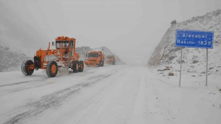 Antalya'yı Konya'ya bağlayan Akseki-Seydişehir kara yolu bin 825 metre rakımlı Alacabel mevkiine mevsimin ilk karı yağdı.
