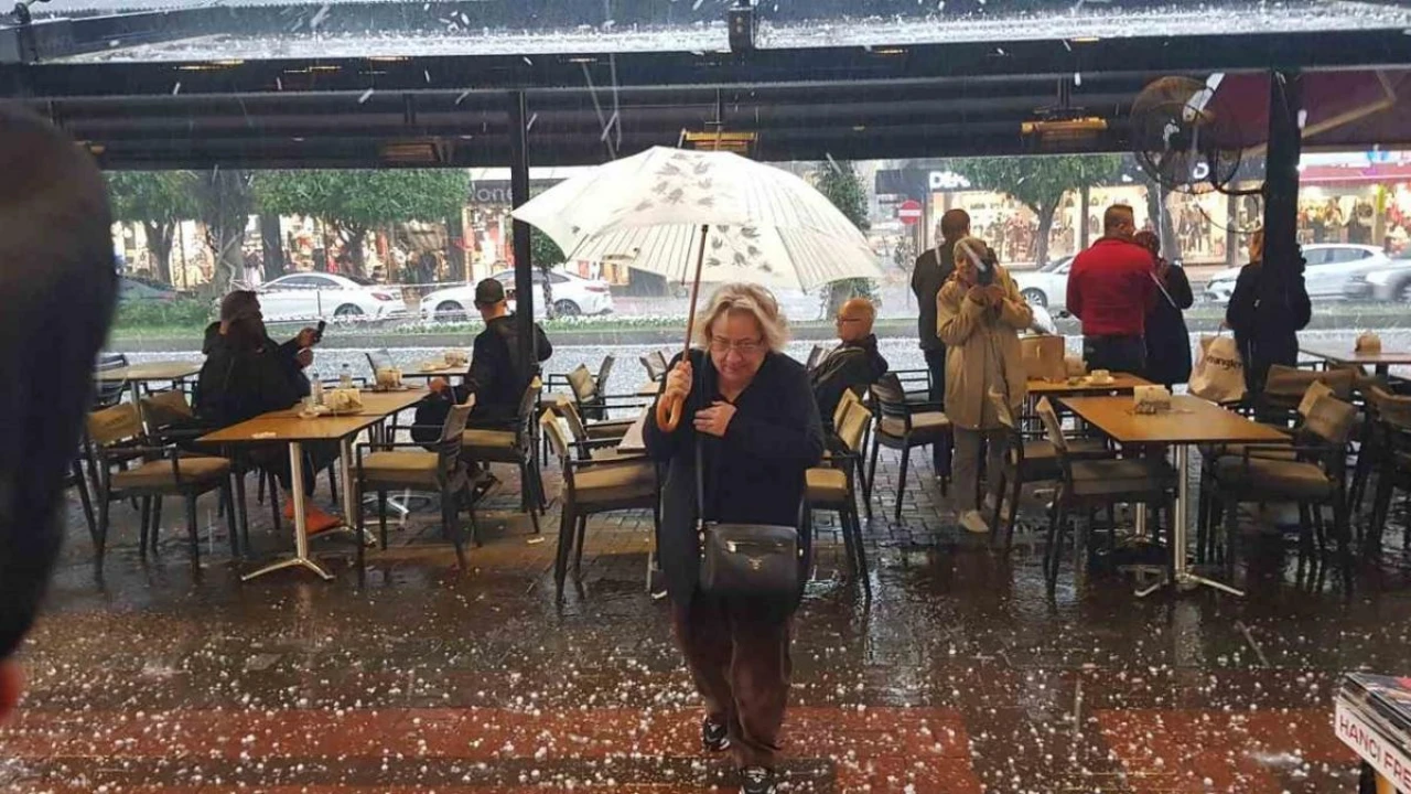 Alanya ilçesinde öğle saatlerinde başlayan sağanak yağmur hayatı olumsuz etkiledi. Yağmur kısa bir süre sonra yerini dolu yağışına bırakırken, yollar beyaza büründü. Vatandaşlar ise dolundan kurtulmak için iş yerlerine sığındı. Yoğun yağış sonucu adeta dolu seli yaşandı. Fındık büyüklüğündeki dolu yağışı kısa sürede etkisini yitirdi. 22 yıldır Antalya’da yaşadığını belirten bir vatandaş ise, ilk defa böyle bir dolu yağışını gördüğünü söyledi.