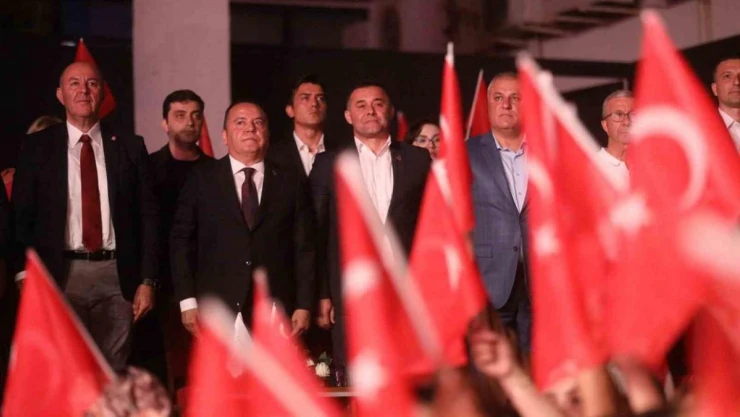 Başkan Muhittin Böcek, büyük bir coşku ve heyecanla gerçekleştirdiği konuşmasını şöyle sürdürdü: “Bugün Yörük çocuğu Muhittin olarak doğduğum topraklarda Antalya Büyükşehir Belediye Başkanıysam, bunun adıdır Cumhuriyet. Ölüme en yaklaştığım anda hastane koridorunda bu topraklarda yetişen doktorun kurtaracağız inadıdır Cumhuriyet. Alanya’da sebze meyve yetiştirmek için ter döken çiftçidir Cumhuriyet. Her bir misafire güler yüzle ev sahipliği yapan turizmcidir Cumhuriyet. Bu vatan ve bayrak için gözünü kırpmadan şehit olan Mehmetciktir Cumhuriyet. Sizlersiniz Cumhuriyet biziz Cumhuriyet. İşte bu yüzden Cumhuriyetin yüzü sensin Antalyam, Alanyam.”
