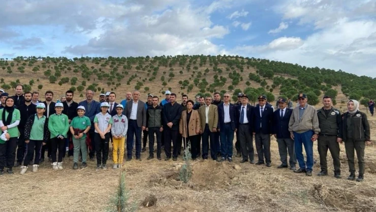 Manisa'nın Alaşehir ilçesinde 11 Kasım Mili Ağaçlandırma Günü Fidan Dikimi Günü'nde Matarlı Mahallesi'nde 500 fıstık çamı fidanı toprakla buluştu.