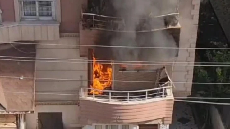 Hatay'ın Reyhanlı ilçesinde bir evde çıkan yangın sonrası alevlerin oturma odasını sardığı anlar, cep telefonu kamerasına yansıdı.