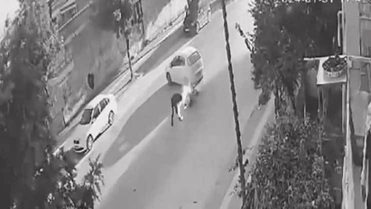 Aydın’ın Söke ilçesinde meydana gelen trafik kazasında araca çarpan motosiklet sürücüsü motosikletiyle birlikte alevler arasında kalırken, sürücü çevredekilerin yardımıyla yanarak ölmekten son anda kurtarıldı. Olay anı ve çevredekilerin müdahalesi güvenlik kamerasına yansıdı.
