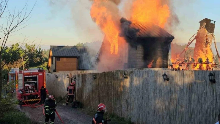 Sakarya'nın Sapanca ilçesinde çıkan yangında alevlere teslim olan bungalov kül oldu.