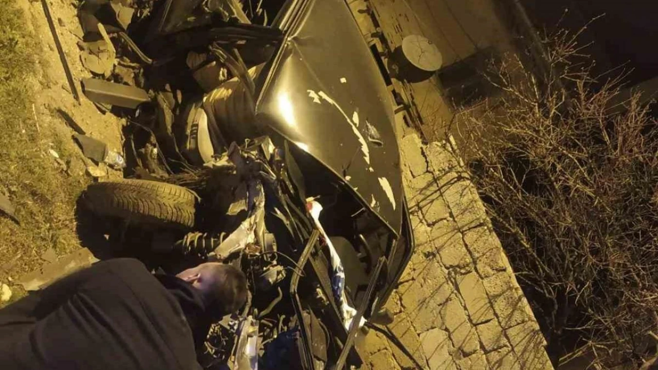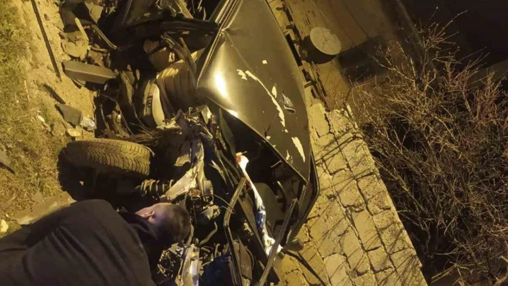 Alkollü sürücü direğe çarptı, Tofaş otomobil hurdaya döndü