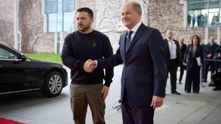 Ukrayna Devlet Başkanı Vladimir Zelenskiy, Almanya’nın başkenti Berlin’de Almanya Başbakanı Olaf Scholz ile bir araya geldi. Zelenskiy ve Scholz, iki ülke arasında güvenlik işbirliği ve uzun vadeli desteğe ilişkin 10 yıllık bir anlaşma imzaladı. Almanya’nın 1991’den bu yana uluslararası alanda tanınan sınırlar çerçevesinde Ukrayna’nın bağımsızlığına, egemenliğine ve toprak bütünlüğüne verdiği desteği sürdürdüğü vurgulanan anlaşmada, iki ülkenin Rusya’nın Ukrayna’ya karşı yürüttüğü haksız, gerekçesiz, yasa dışı ve acımasız savaşı mümkün olan en güçlü ifadelerle kınadığı belirtildi.