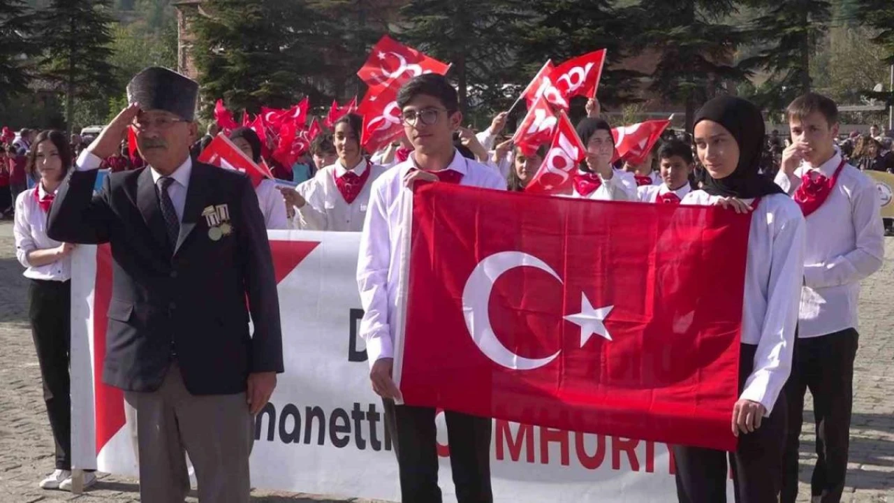 Taşova ilçesinde düzenlenen 29 Ekim Cumhuriyet Bayramı kutlamalarında “Dededen Toruna Emanettir Cumhuriyet” pankartıyla alana gelen çocuklar, Kıbrıs gazisi Muammer Torun’un verdiği Türk bayrağını öperek devraldı. Programda Yeşilırmak Şehit Ferhat Bolat İlkokulu öğretmen ve öğrencilerin oluşturduğu ay yıldızlı 100. yıl logolu koreografi ise ilgiyle izlendi.