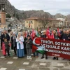 Katılımcıların ellerinde taşıdıkları Türk ve Filistin bayraklarıyla yaptıkları yürüyüş sonrası açıklamalarda bulunan Dr. Elif Sakallı, “Terör devleti İsrail, Filistin topraklarında bütün dünyanın gözü önünde sivilleri öldürmeye, hastaneleri bombalamaya devam ediyor. Bütün bu yaşananlara rağmen insan haklarından bahsedenlerin, eşitlik, adalet ve hukuk üstünlüğünü vurgulayanların haftalardır bu zulme sessiz kaldıklarını, hatta terör devletini desteklediklerini görüyoruz. Bu yapılanları asla unutmayacağımızı burada tekrar vurguluyoruz” dedi.