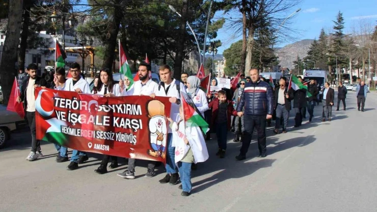 Amasya'da hekimler ve sağlık çalışanları, İsrail'in Gazze'de 20 binden fazla insanın ölümüne yol açtığı 3 aydır sürdürdüğü vahşete tepki gösterdi.
