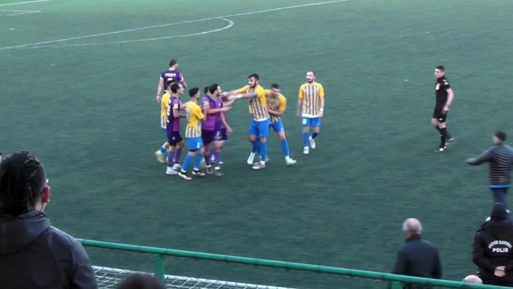 O anlar saniye saniye görüntülenirken, polis ekipleri çıkan gerginliği güçlükle yatıştırdı. İki takımın yöneticilerinin kırmızı kart gördüğü mücadele, olaylar yatıştırıldıktan sonra devam etti. Maç 1-1 berabere tamamlandı.