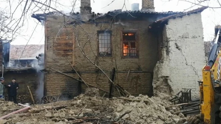 2 katlı ahşap evde yangın çıktı, 50 küçükbaş hayvan son anda kurtarıldı
