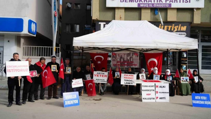Muş'ta çocuklarının terör örgütü PKK tarafından dağa götürülmesinden HDP'yi sorumlu tutan aileler, partinin il başkanlığı binası önünde oturma eylemi yaptı. Diyarbakır'da evlat nöbetine katılan 4 aile de Muş'a gelerek HDP il binası önünde oturma eylemi yapan ailelere destek verdi. Çocuklarına kavuşma ümidiyle Diyarbakır annelerinin başlattığı eyleme destek veren Muşlu aileler, her hafta çarşamba günü yaptıkları eyleme devam etti. HDP İl Başkanlığı binası önünde toplanan aileler, 'Halk düşmanı parti', 'Evlatlarımızı vereceksiniz', 'Ha HDP ha PKK', 'Türk-Kürt kardeştir, HDP kalleştir', 'Halkı dolandıran parti', 'Anneler direniyor', 'Artık yeter yakamızdan düşün' ve 'Yeter artık evlatlarımızı bırakın' yazılı pankartlar açtı.