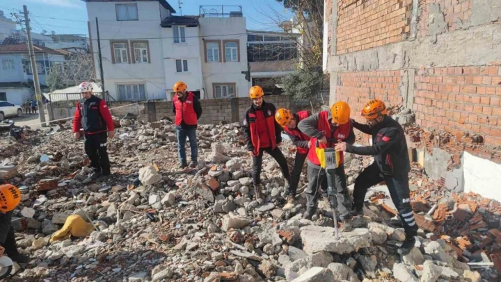 Adıyaman'da kurtarma ekibi tarafından deprem ve doğal afet riskleriyle ilgili uygulamalı tatbikat gerçekleştirildi.